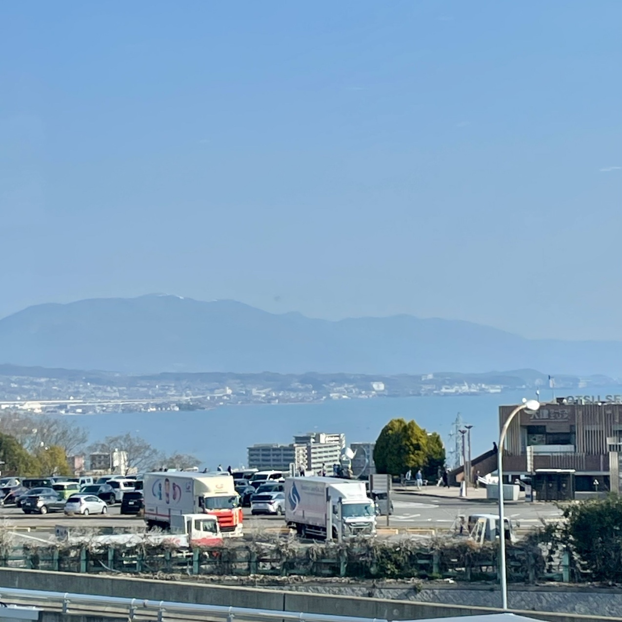 大津 るんちゃん!大津サービスエリアまで来ました〜琵琶湖が見えるのよね〜😊ここまで来ればほぼ到着したようなもの☺️まだスタッドレスタイヤのままなのでさほどスビード出さなかったけど順調で4時間半で着きそう😊