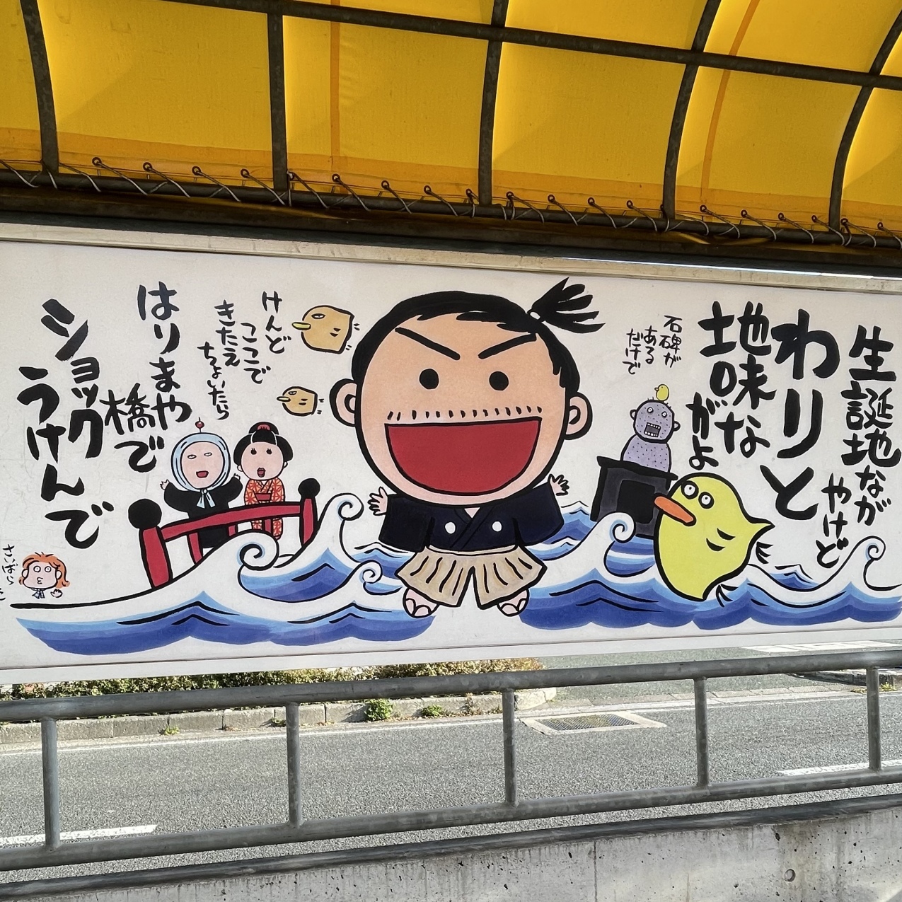 😆 るんちゃん!高知街中は高知城くらいしか…はりまや橋はガッカリされるだろうし😅あとは〇〇跡ばかりなんですヨ😅と観光案内所の女性が仰ってたけど〇〇跡であろうがなんであろうが坂本龍馬生誕地は絶対行きたい‼️と枡形駅下車😊駅に書かれてることが可愛すぎる😆