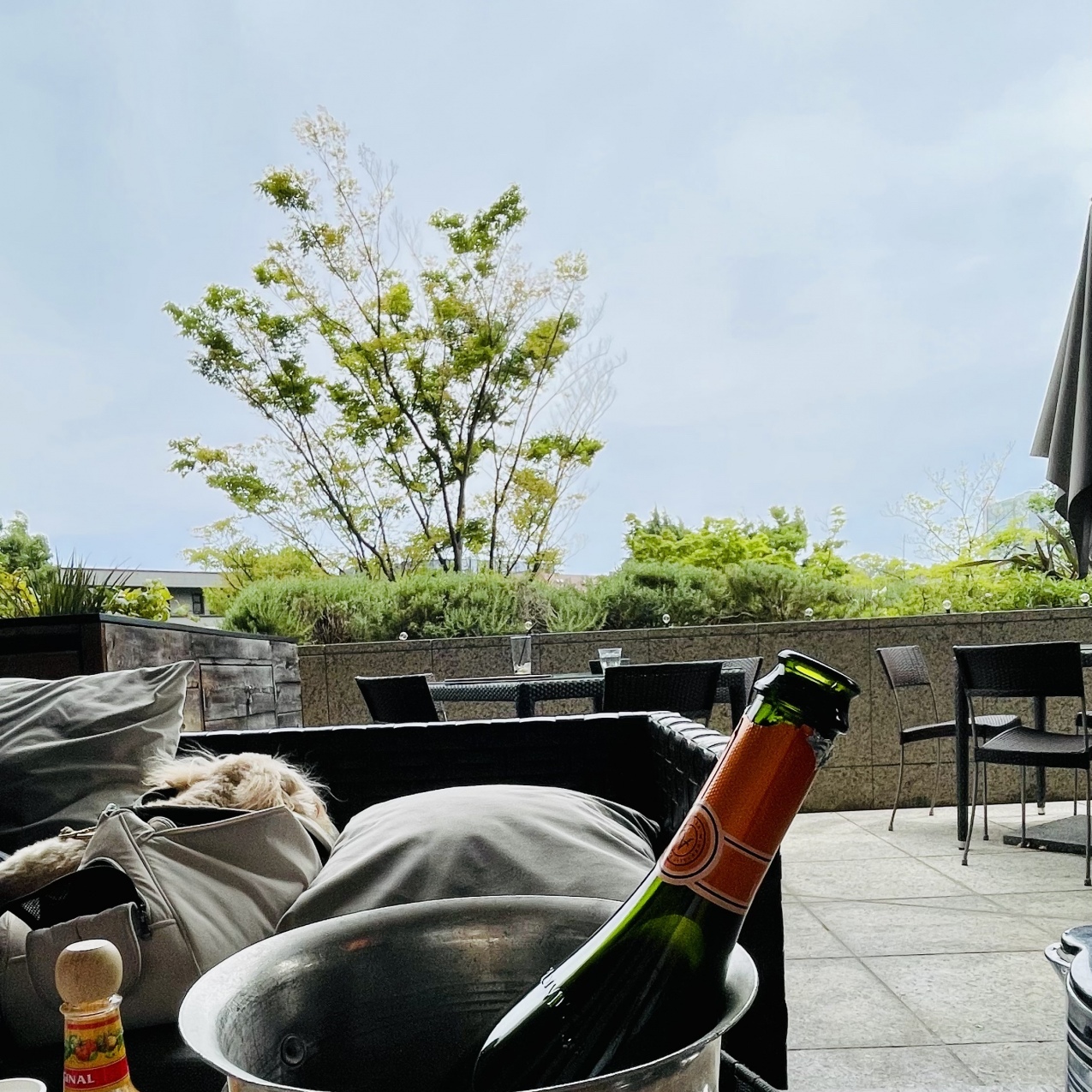 ランチ🍽 るんちゃん!るっちゃんママのご用事おわって合流してランチ😋🍴💕るんちゃんいる時は時々来てたお店久しぶりに来たらメニューが変わってて前より良いかも‼️ここのテラスは気持ち良いのよね〜❣️オスカーは遊び疲れたのか?ぐっすり寝てます😂